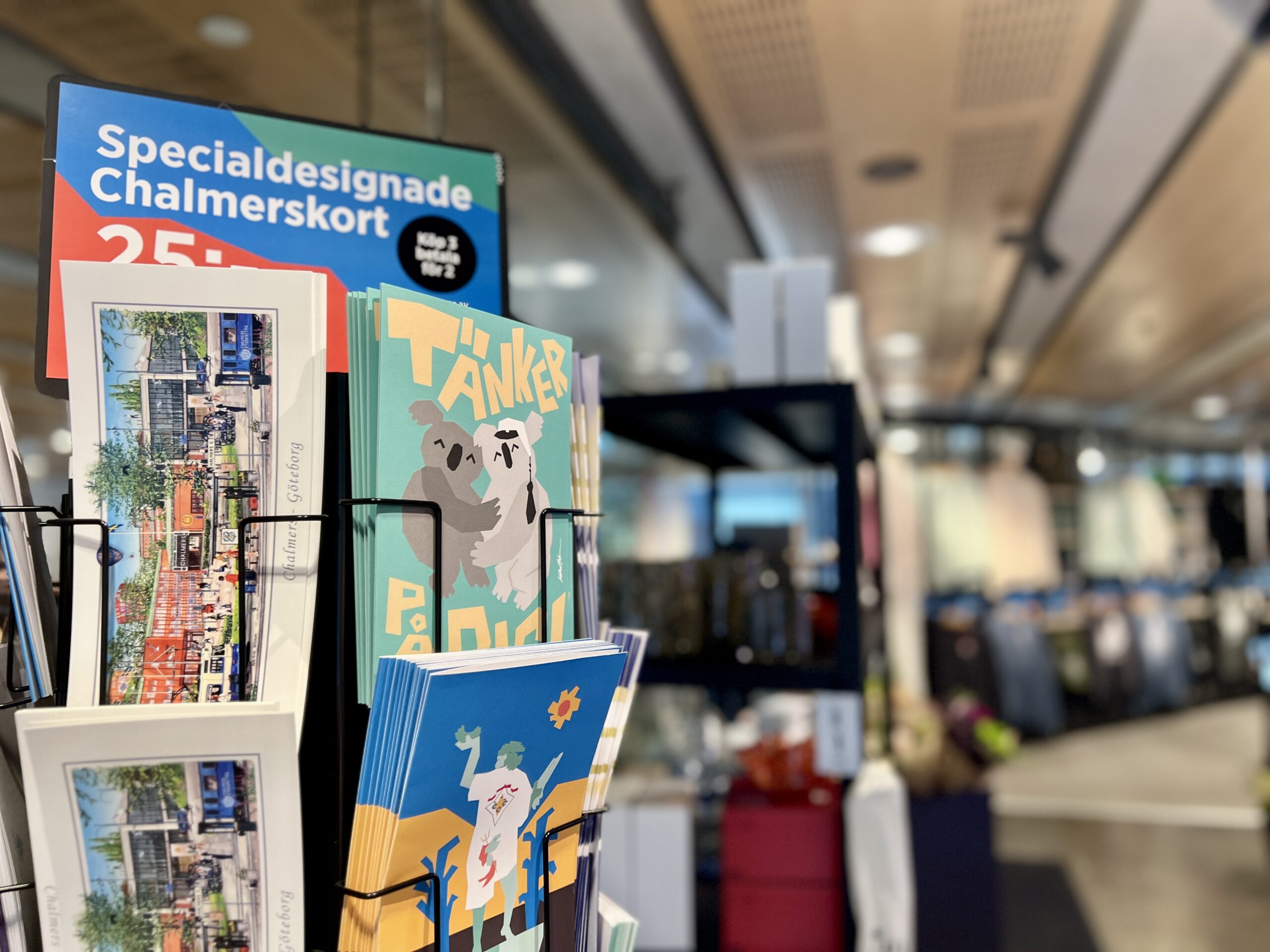 Vår egna butik – med allt som studenter och anställda behöver utan att lämna campus. Här finns kurslitteratur, Chalmerskläder, presenter, blomsterbar, livsmedel, färdiga luncher, snacks och godis. Givetvis finns kaffe och en bakeoff-hörna med nybakta godsaker flera gånger dagligen.